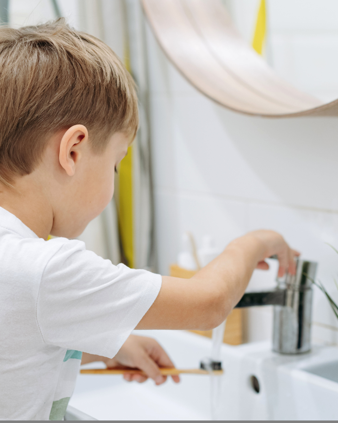 While brushing their teeth, explain to them in a simple ( story alike) way, why bamboo brushes are better for the environment and thus the whole ecosystem