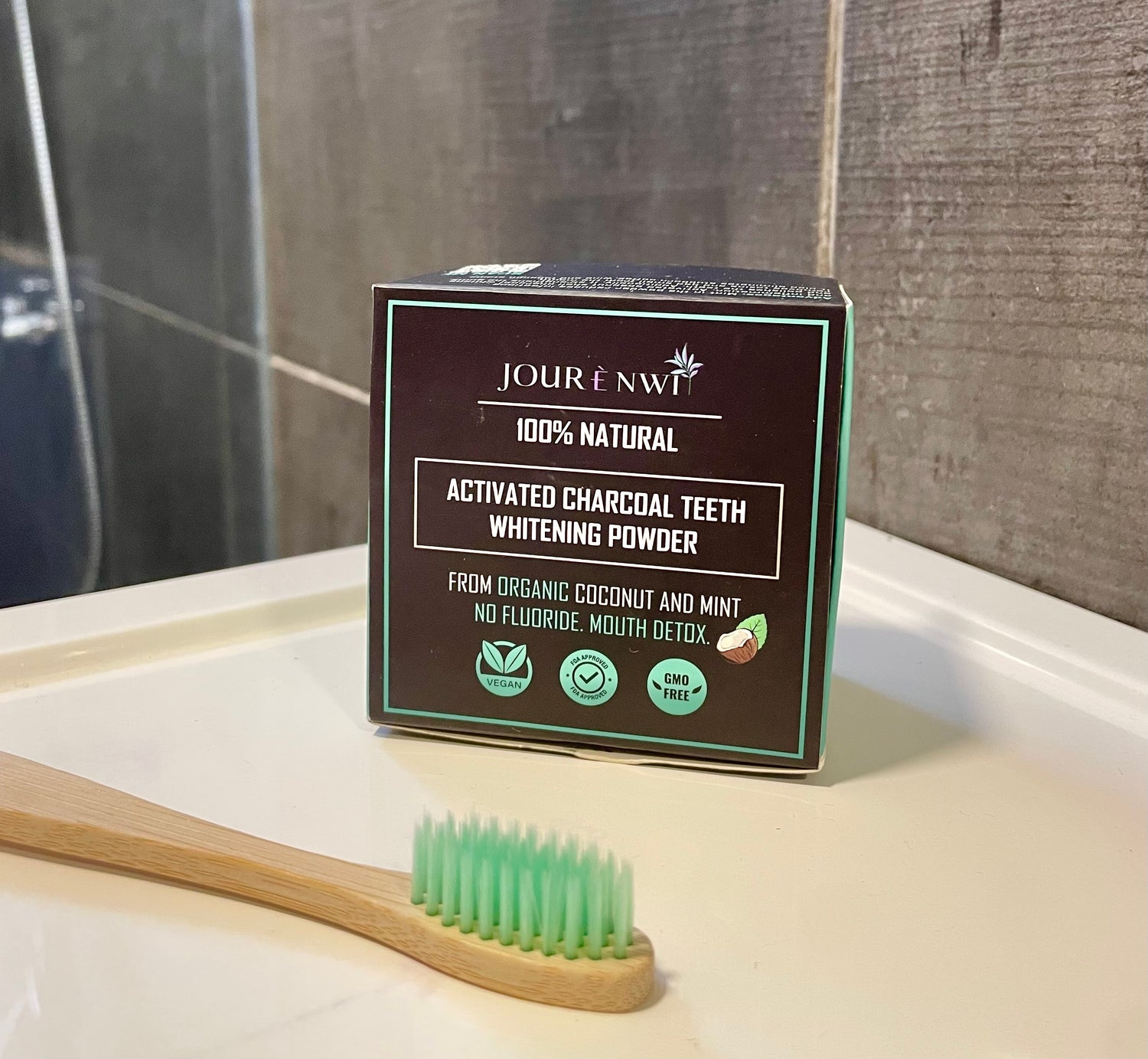 The activated charcoal detoxifies and cleans your mouth by removing accumulated bacteria and maintaining your oral PH to support healthy mouth flora